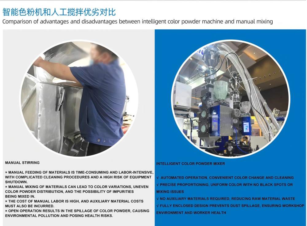 100 کیلوگرم در ساعت"مخلوط پودر رنگ هوشمند" را می توان به طور یکپارچه با سیستم های تغذیه متمرکز، سیستم های انتقال مرکزی و سیستم های حمل خودکار مواد ادغام کرد. میکسر رنگ پلاستیکی مجهز به سنسورهای توزین با دقت بالا است که یکنواختی فرآیند اختلاط و یکنواختی رنگ را تضمین می کند و از تناسب خودکار پودرها و مواد افزودنی چند جزئی پشتیبانی می کند.